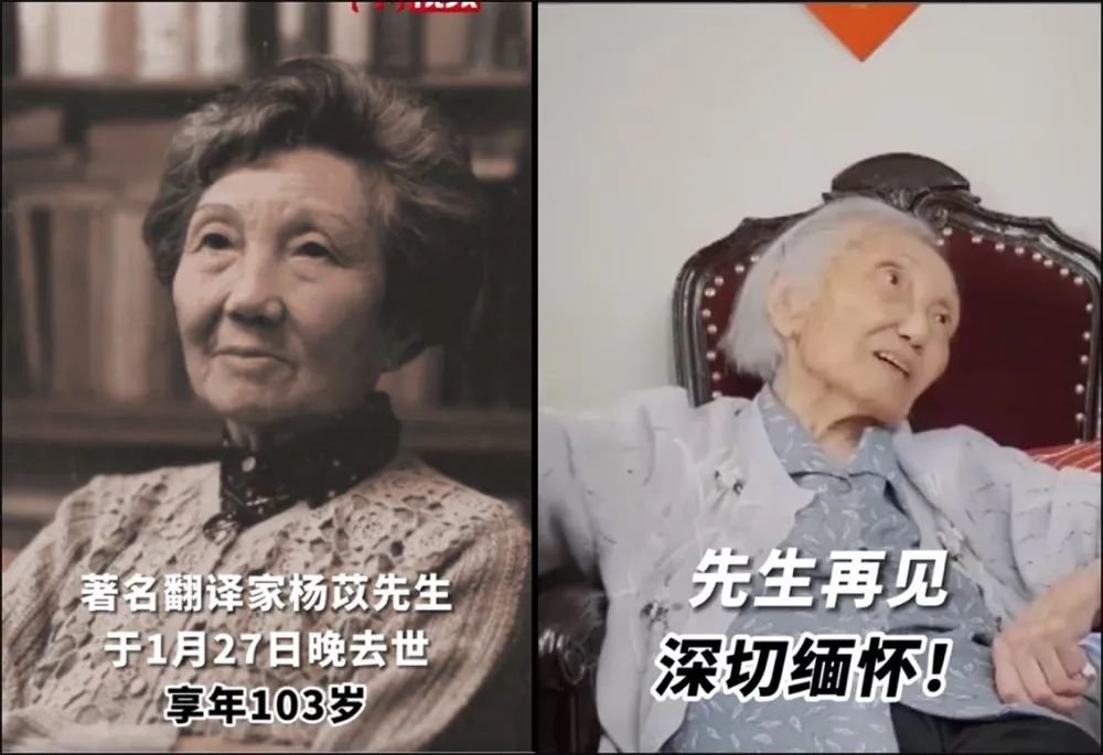 上个月首创《呼啸山庄》译名的翻译家杨苡女士去世,满屏写的都是“先生再见”。
