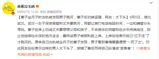 再之前,某新闻标题:妻子坐月子时出轨被发现男子跳河,妻子反劝其坚强。
