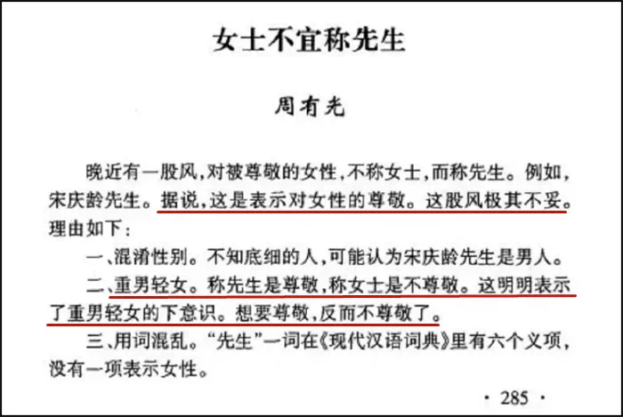 值得一提的是,将女性冠以“先生”之称,早有语言学家提出异议: