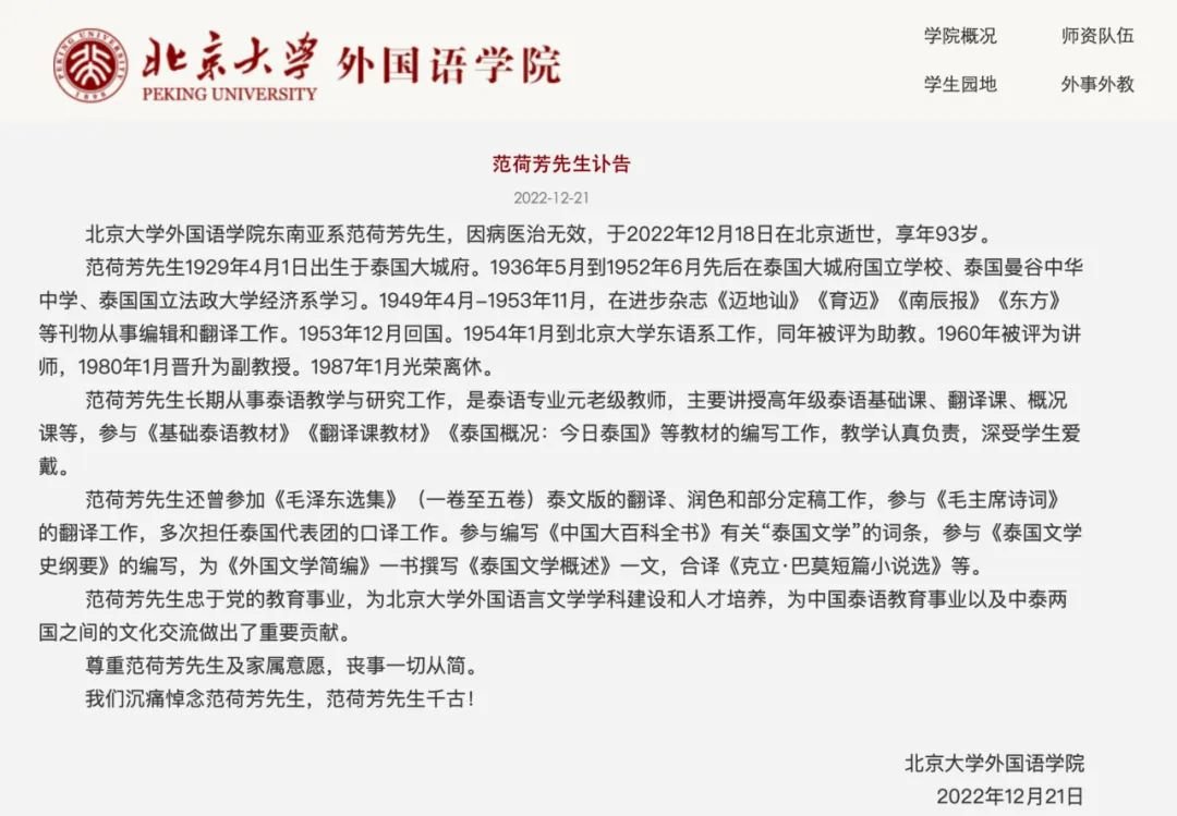 讣告记录了几十年来,范荷芳先生为教育事业所做的种种贡献,成绩斐然。