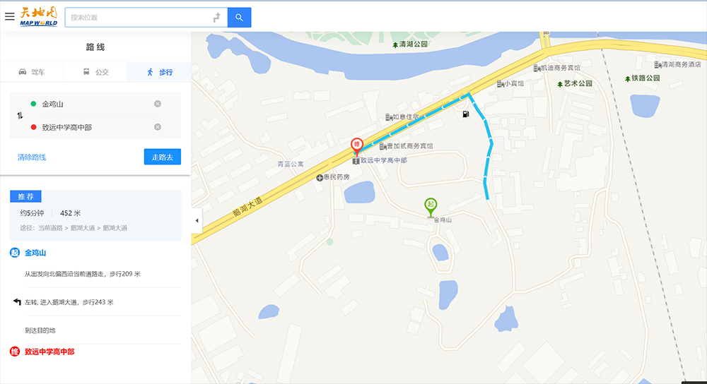 根据国家地理信息公共服务平台“天地图”显示,河口镇金鸡山区域距离致远中学高中部约450米。