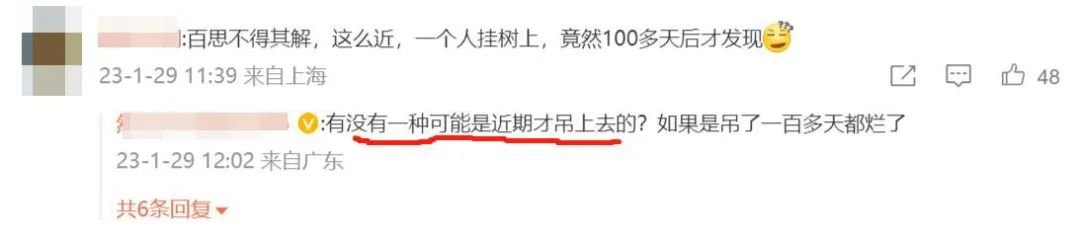 于是就有网友会怀疑,是不是死后再被吊上去的?