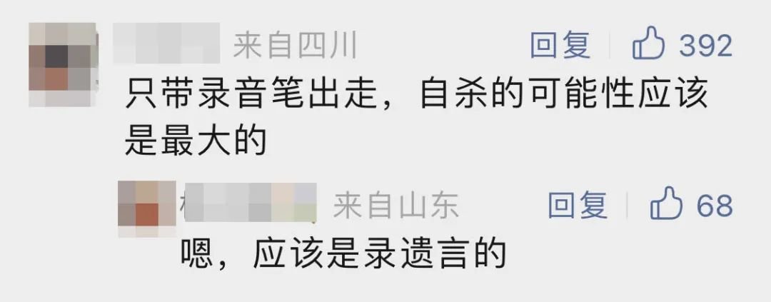 不少读者在留言讨论中都认为情况3(独自离校后自杀)的可能性较大,因为胡鑫宇失踪时没带身份证、没带现金、没带电话手表,却只带了一支录音笔,这“可能是为了记录他最后的想法”。