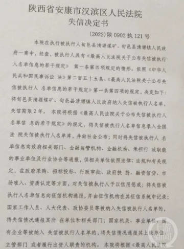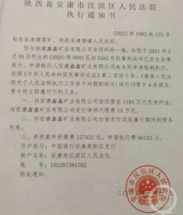 近日,一篇名为《陕西旬邑:镇政府失信成“老赖” 8年欠款企业难讨回》的网帖流传,引发广泛关注。帖子称,2012年安康市鑫鑫矿业有限公司(以下简称鑫鑫矿业)与咸阳市旬邑县清塬镇的镇办企业清塬煤矿签订安全生产托管合同,但合同期至2015年8月18日中止。合同中止后,为了2000余万元的债务,鑫鑫矿业讨要了8年之久,如今虽赢了官司,但镇政府和清塬煤矿却拒不履行。2月10日,咸阳市旬邑县清塬镇回应上游新闻称:“不属实。本金1400多万元和违约金,去年还了1000多万,余款承诺是在3月底前还清。”(上游新闻记者 冯盛雍)