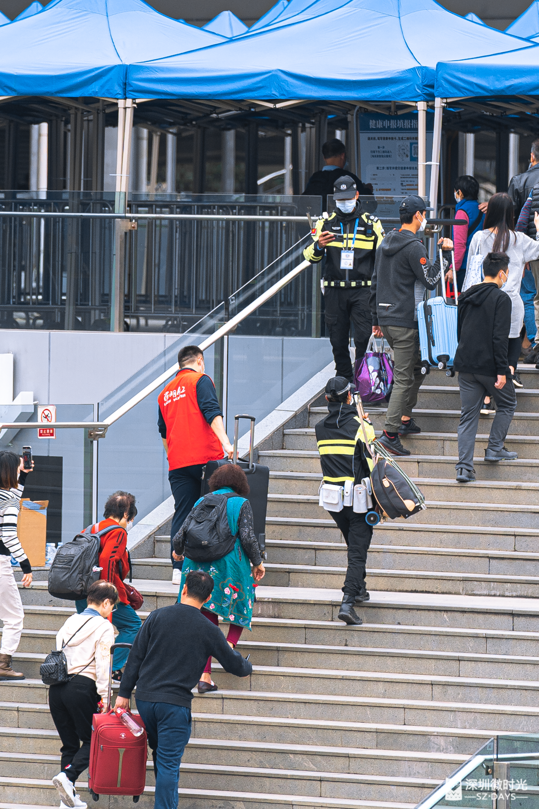 出境通道上,工作人员和志愿者们一次次帮忙抬着旅客的行李箱上台阶。罗湖口岸有多久没见到这些大包小包,拉着行李箱去香港采购“大出血”的深圳人了。