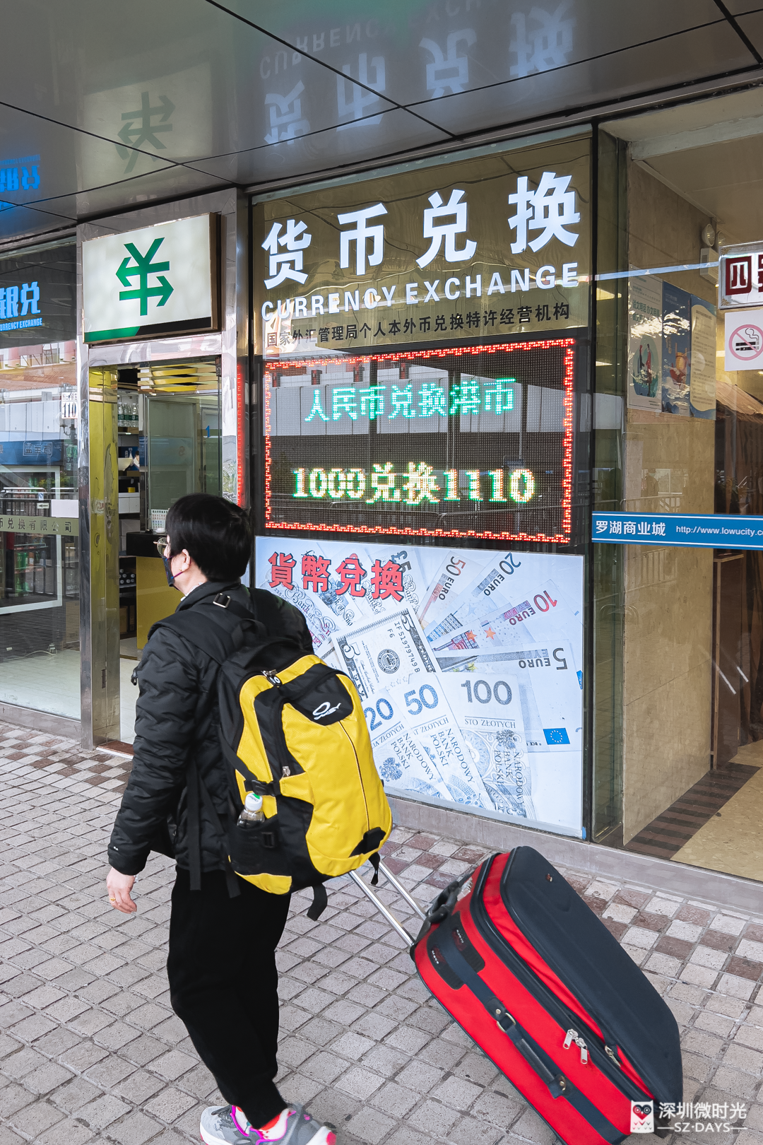口岸的货币兑换点开了,1000人民币兑换1110港币。