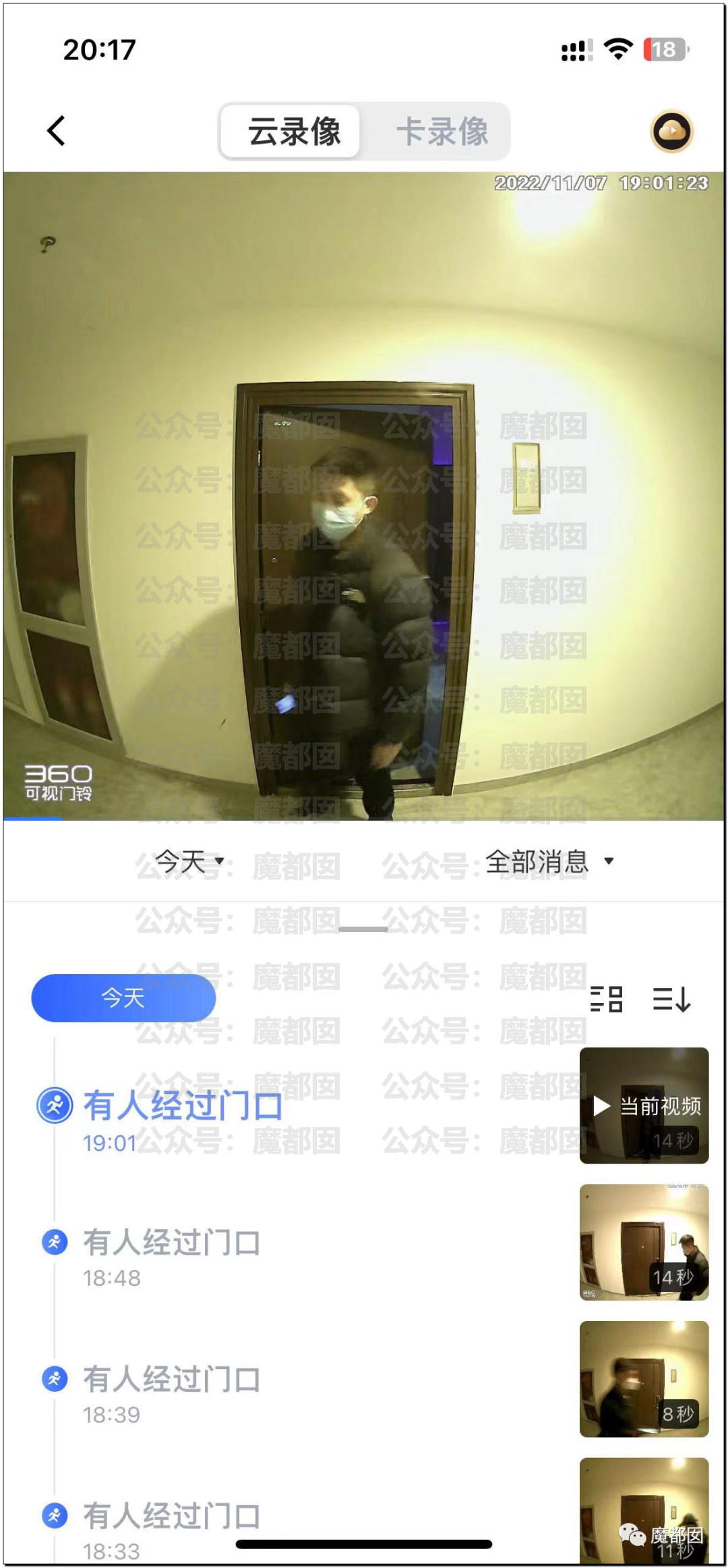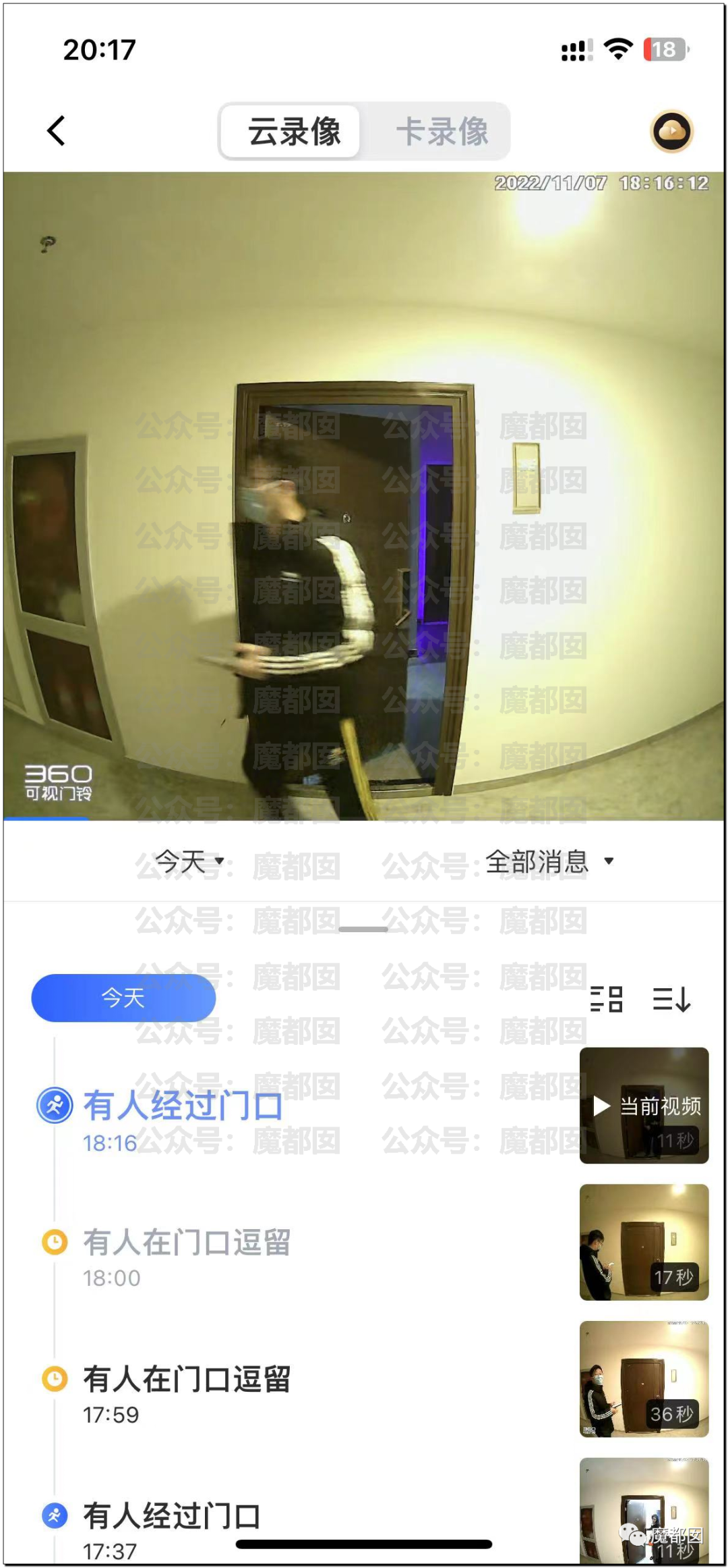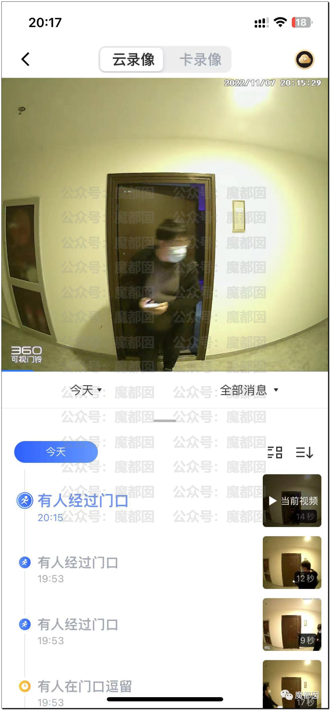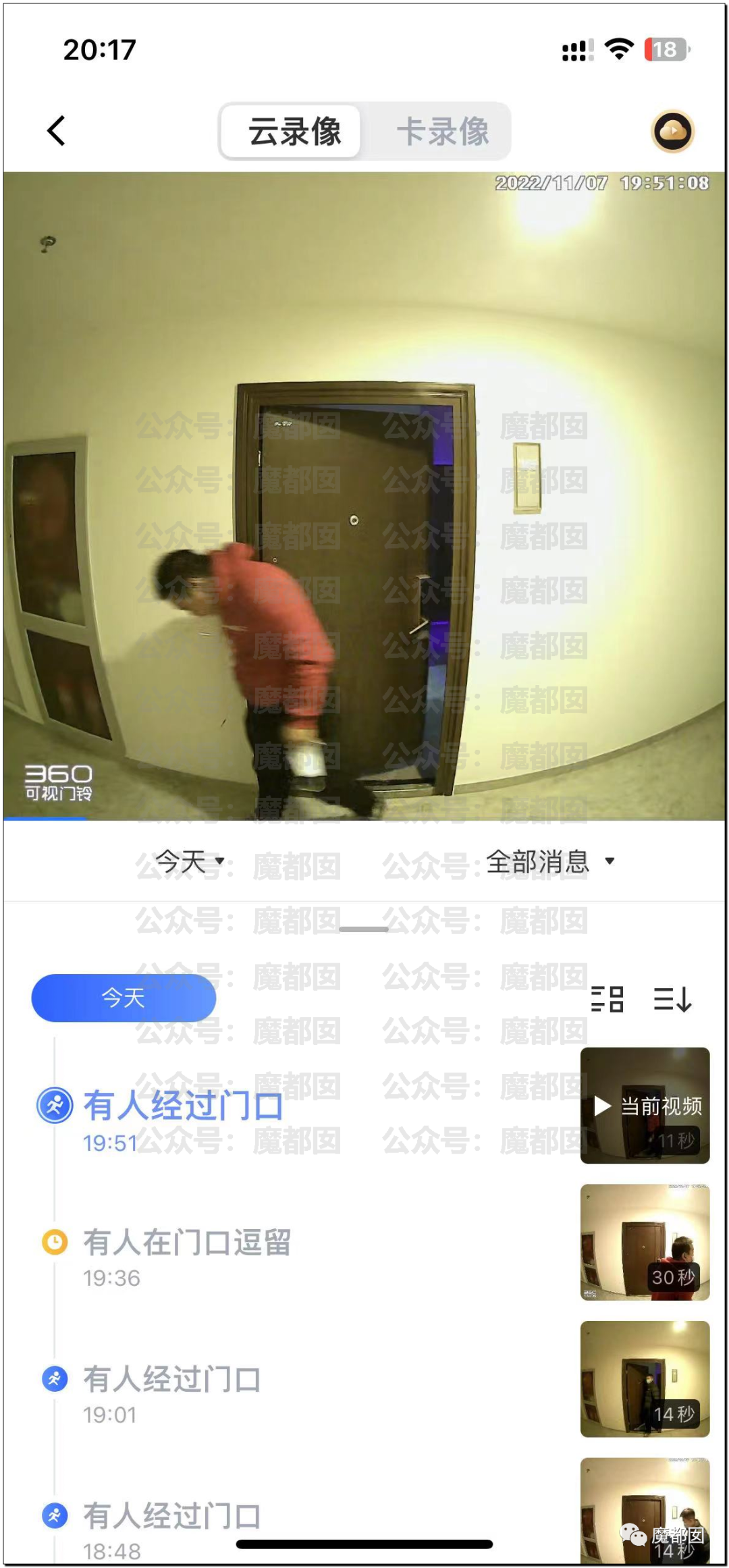 事情也是非常的“狗血”,一个住户,有个摄像头对着楼道,这个摄像头可以那种“移动报警”,现在很多摄像头都有这种功能: