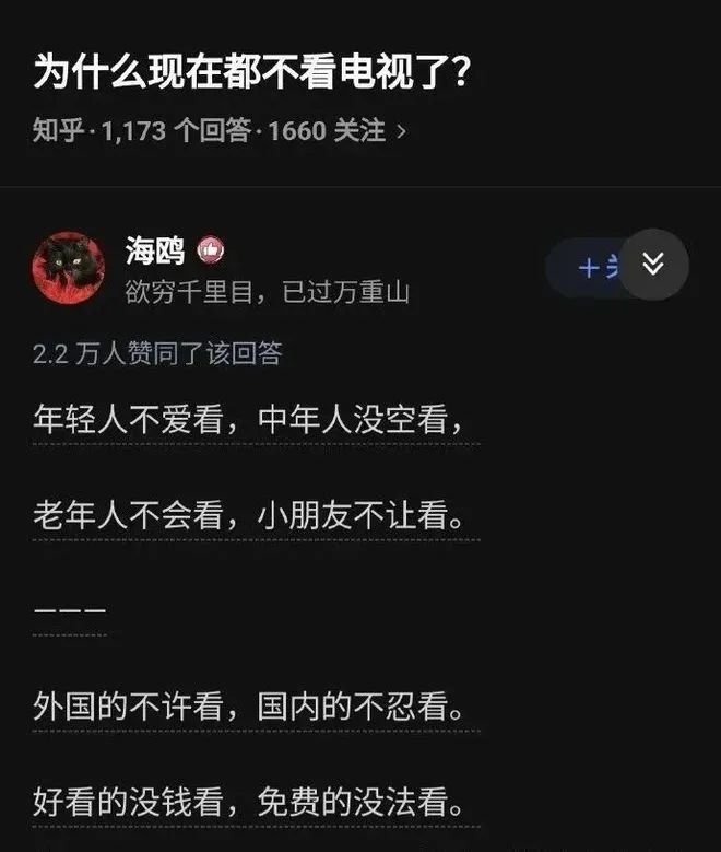 因此,有知乎网友一针见血地总结“为什么现在都不看电视了”: