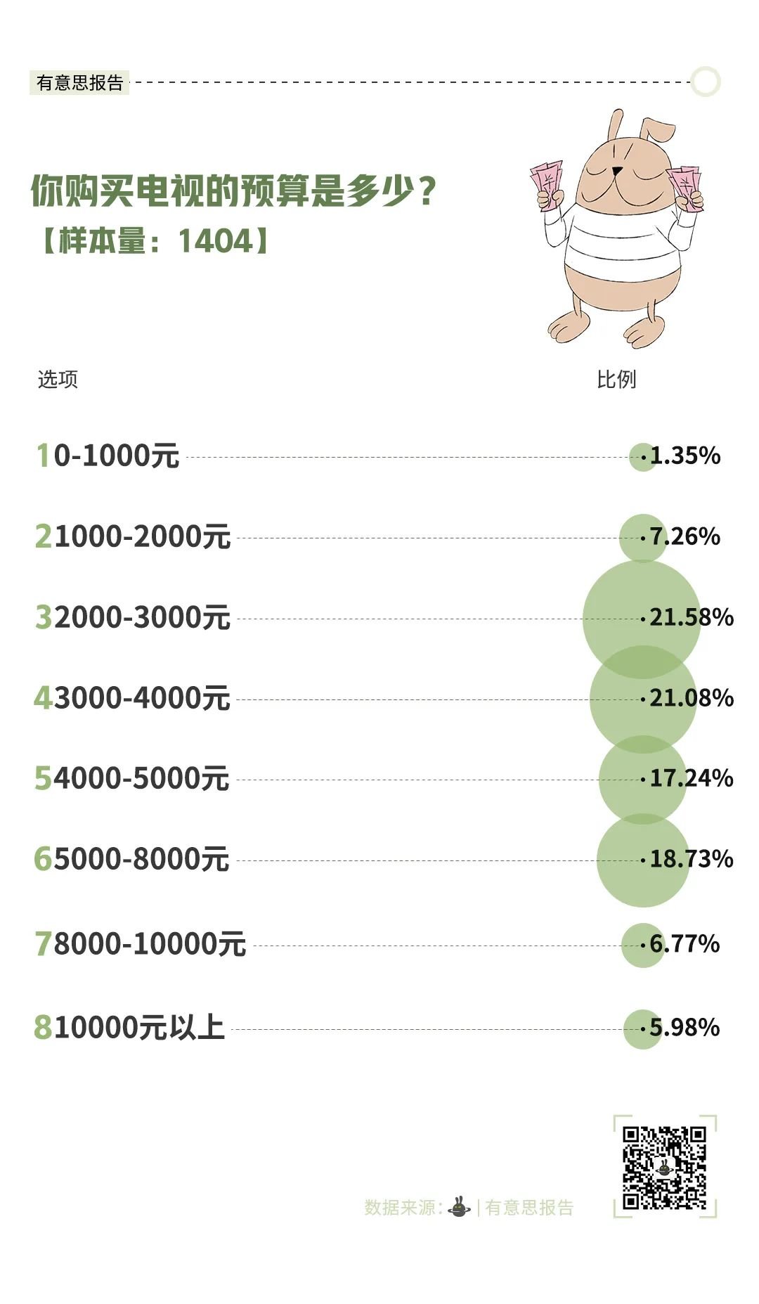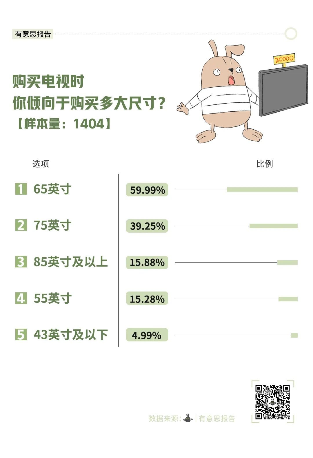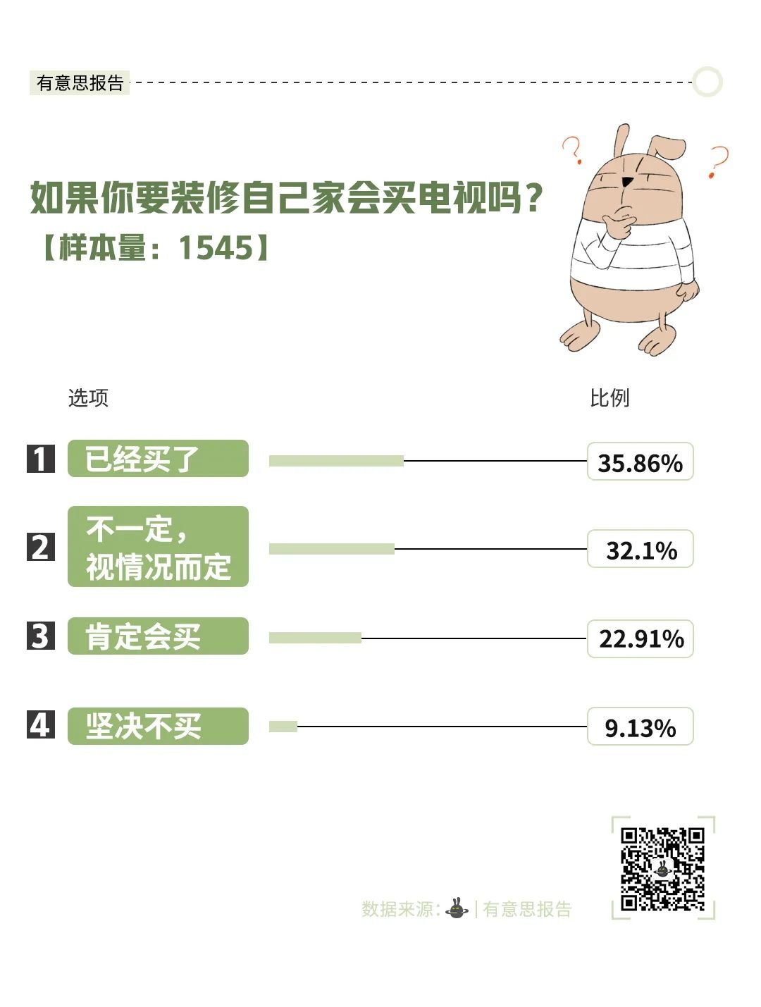 调查显示,跟伴侣同居是买电视的分水岭。有了自己的“小窝”后,买电视的意愿直线上升。排在第二位的是有娃家庭。