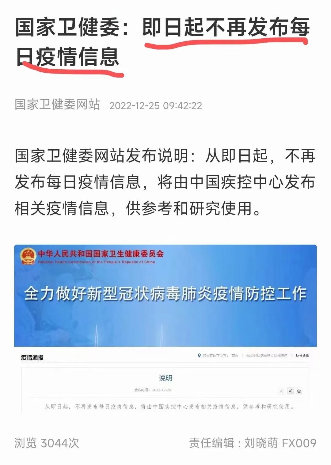 今天国家卫健委都不再发布疫情信息了。