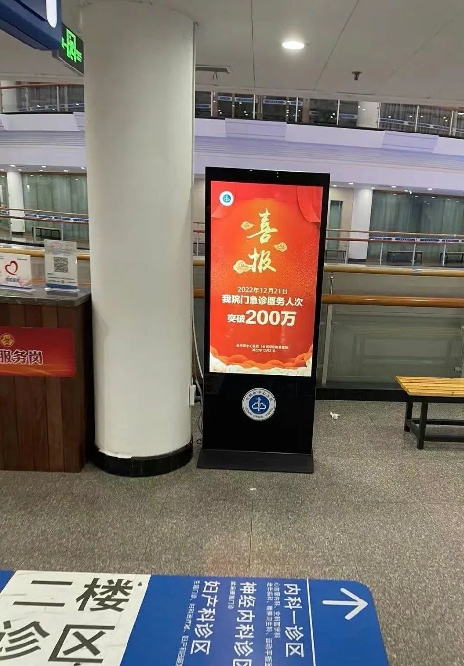 台州市中心医院在医院的大大小小的LED屏幕上写着喜报,我还以为他们挽救了奥密克戎的危重症患者哦,但定睛一看,原来是在2022年12.21日,这家医院的门急诊服务人次突破200万人。