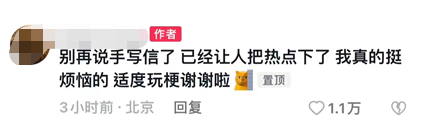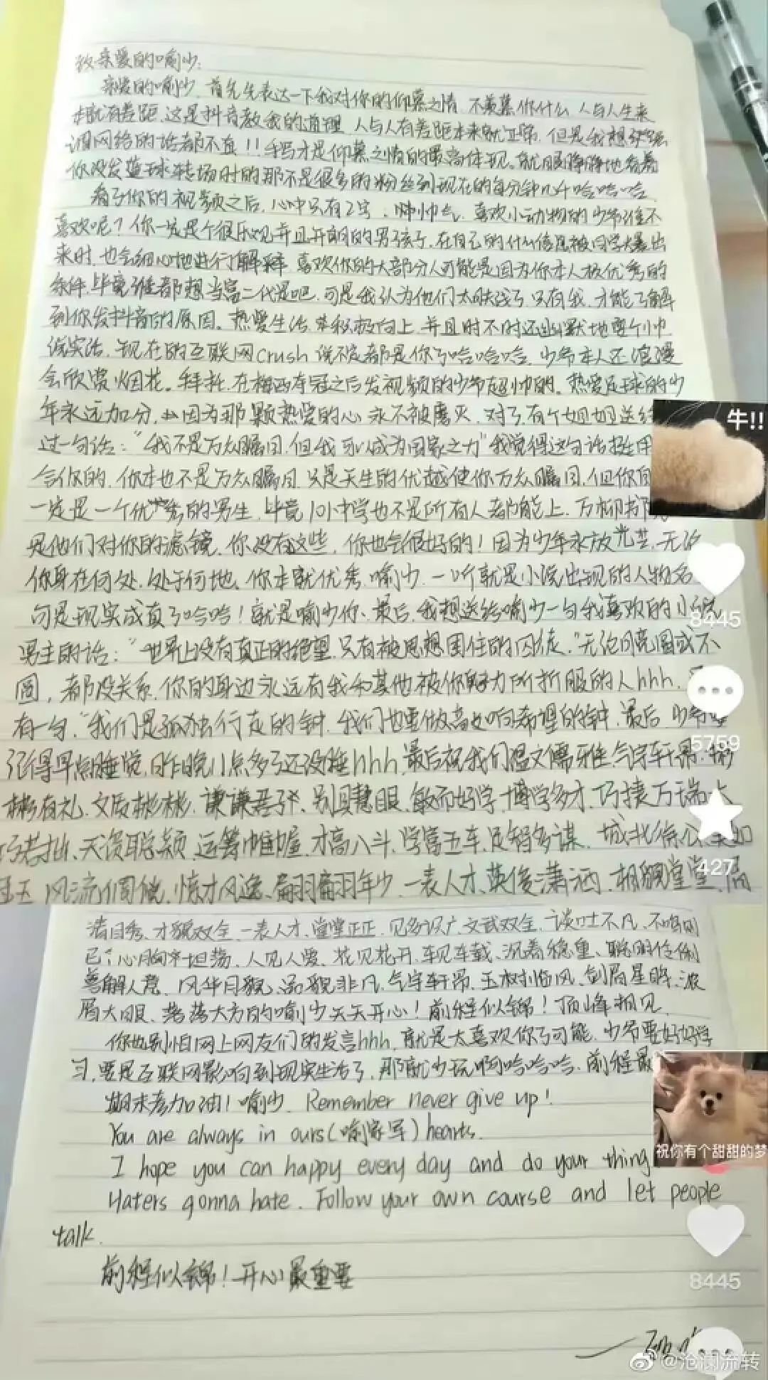 对于手写信一事,其实他也感觉很尴尬,于是说自己把热点撤下了。