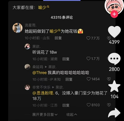 “她起码做到了喻少为她花钱”这个评论居然有7.7万个赞!