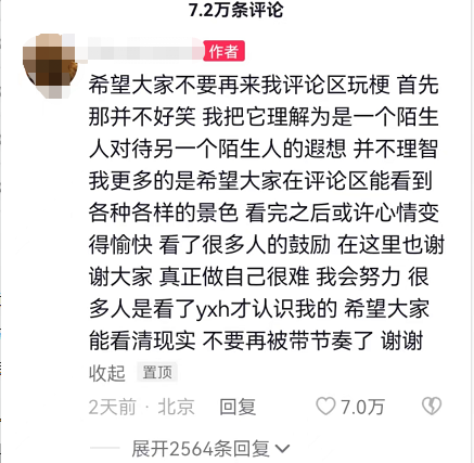 他说不希望大家在他评论区玩梗,对于一个陌生人的想象并不理智。