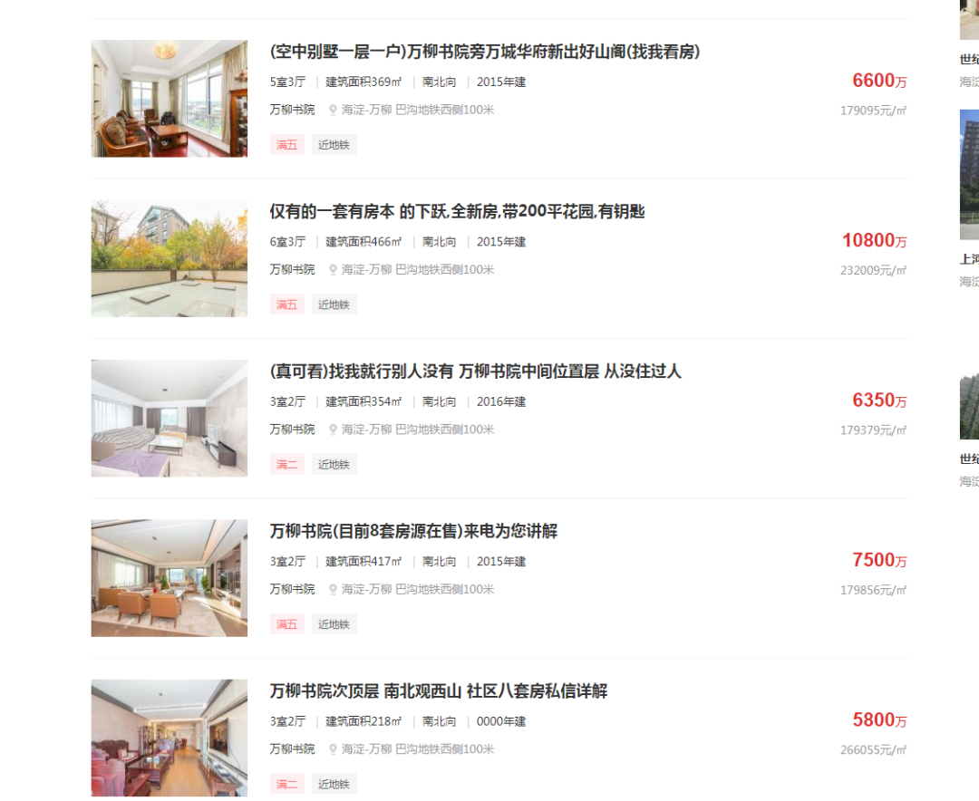 2014年开盘时候,万柳书院的房价就高达14万元/平方米,然后一路爬升到今天的20-30万每平米。