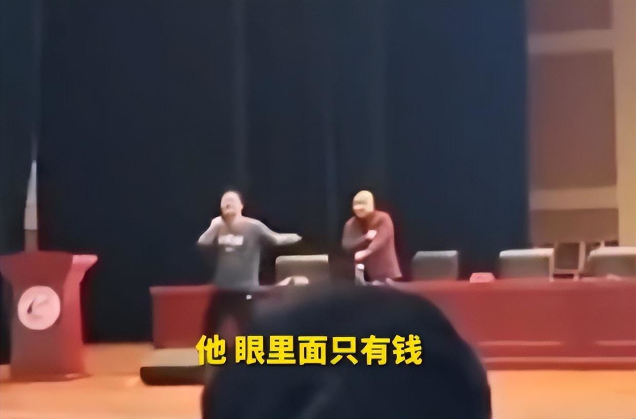 此时,一名学生冲上讲台抢过陈宏友的话筒,对着台下的学生大喊:“他眼里只有钱,学习是为了钱,崇洋媚外!努力学习是为了什么?是为了中华民族的伟大复兴……同学们,努力学习,为了中华民族的伟大复兴!”