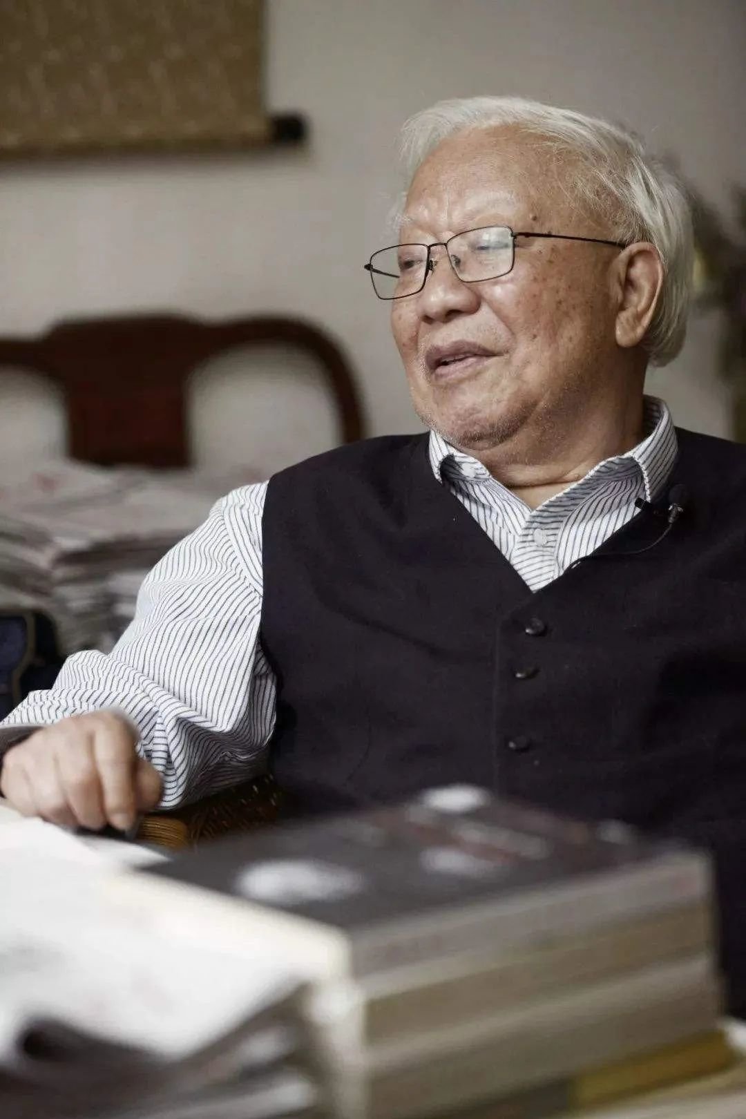 这一天胡耀邦穿着白色的长袖衬衫,长裤。刚坐定后,胡耀邦就撸起袖子,把手放在膝盖上,看起来非常随便。