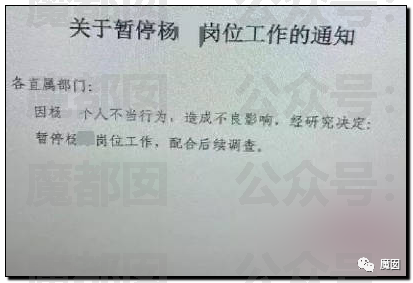 然后有网友贴出了关于处理的通知,真的是停职了: