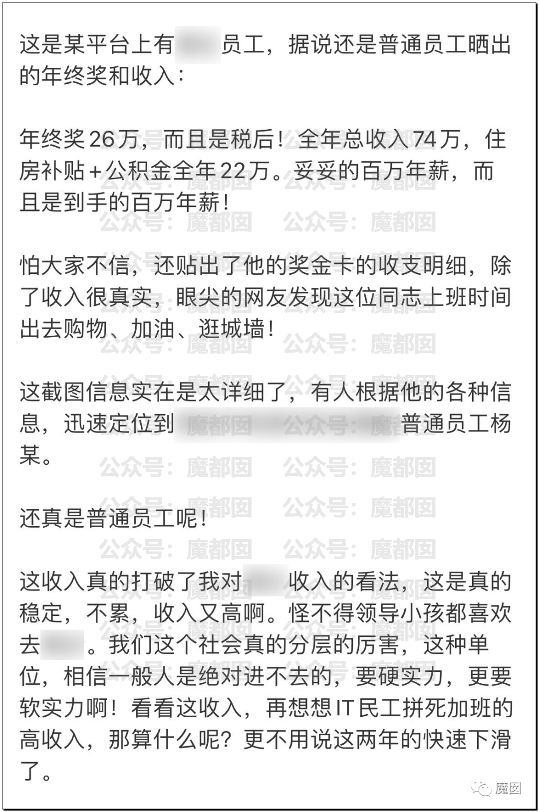 这个人年终奖竟然达到26万,全年收入达到74万。