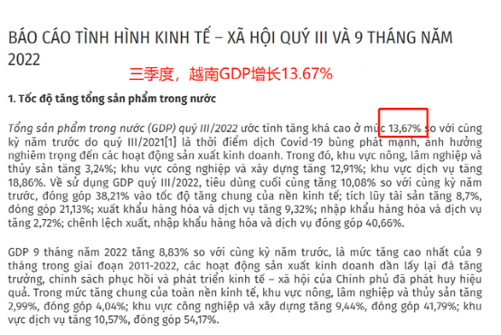 2022年上半年,在奥密克戎肆虐和“高通胀”压力下,全球经济再陷泥潭。然而,越南上半年经济同比增速达6.42%冠绝亚洲。前三季度,越南GDP近3000亿美元,2022年全年势必要突破4000亿了。亚洲开发银行预测,2022年,越南经济增长率将是6.5%,2023年是6.7%。