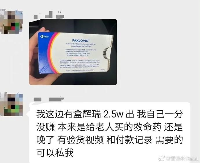 我朋友圈就有几个之前卖菜的团长,现在在卖Paxlovid了。在他们口中,这药就是无所不能的神药,谁吃了就能立马治好新冠。当然价格也比较夸张,基本都要五位数以上。