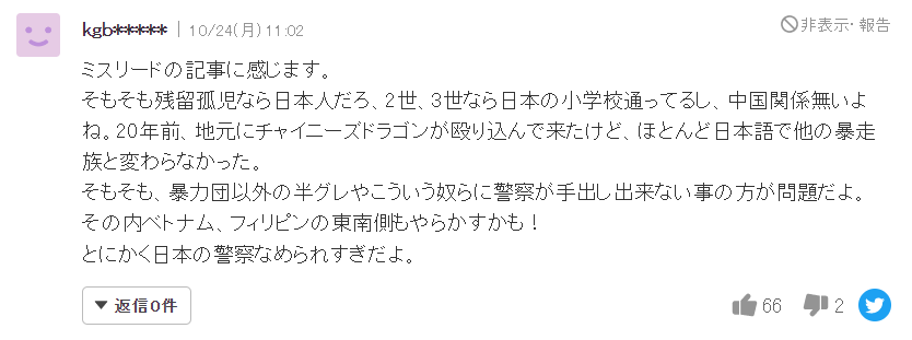 当然,评论里也有清醒的日本网友表示这篇文章“有误导性”,因为这些日本遗孤“就是日本人”。这位网友还表示,20年前“中国龙”在自己的老家搞事,成员说的都是日语,跟其他帮派没什么区别。