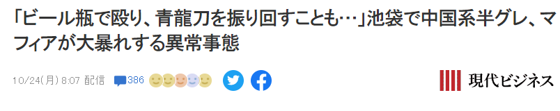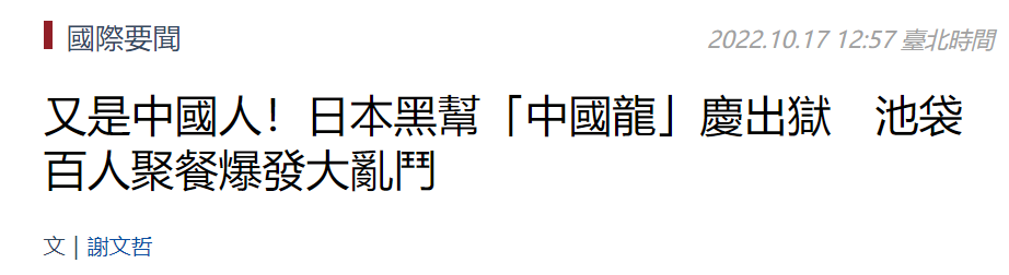 有些媒体看到这个点,马上兴奋起来。尤其是台湾省有媒体如获至宝,标题赫然为《又是中国人!日本黑帮“中国龙”庆出狱 池袋百人聚餐爆发大乱斗》,报道里说,就在前几天,池袋一家料理店刚有一群中国人打起来了。