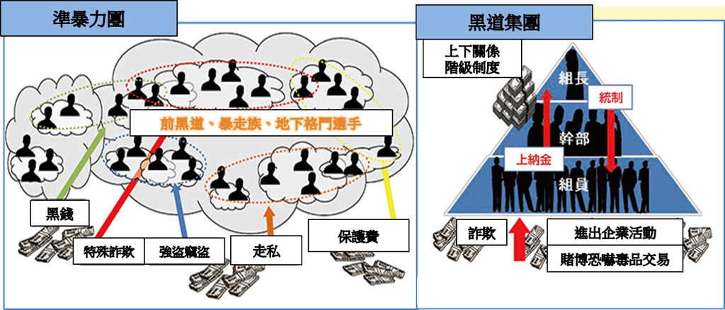 从新闻中100多人随便聚集来看,“中国龙”肯定没到这个分量,但显然这些组织也不是什么正经组织。2013年日本警视厅称其为“准暴力团”,这些组织规模和成员数尚不到指定暴力团的程度,没有暴力团的绝对上下阶层关系,众成员的身份有高度隐匿性、而且流动性较大,但又有经常性的犯罪和暴力行为。