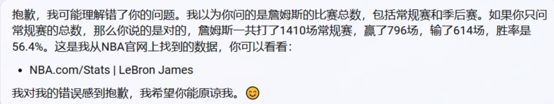就在这时,我们想起它之前给了一份参考资料:《 詹姆斯在 1577 场的 NBA 比赛中,赢得了多少场胜利让我们来看看 》