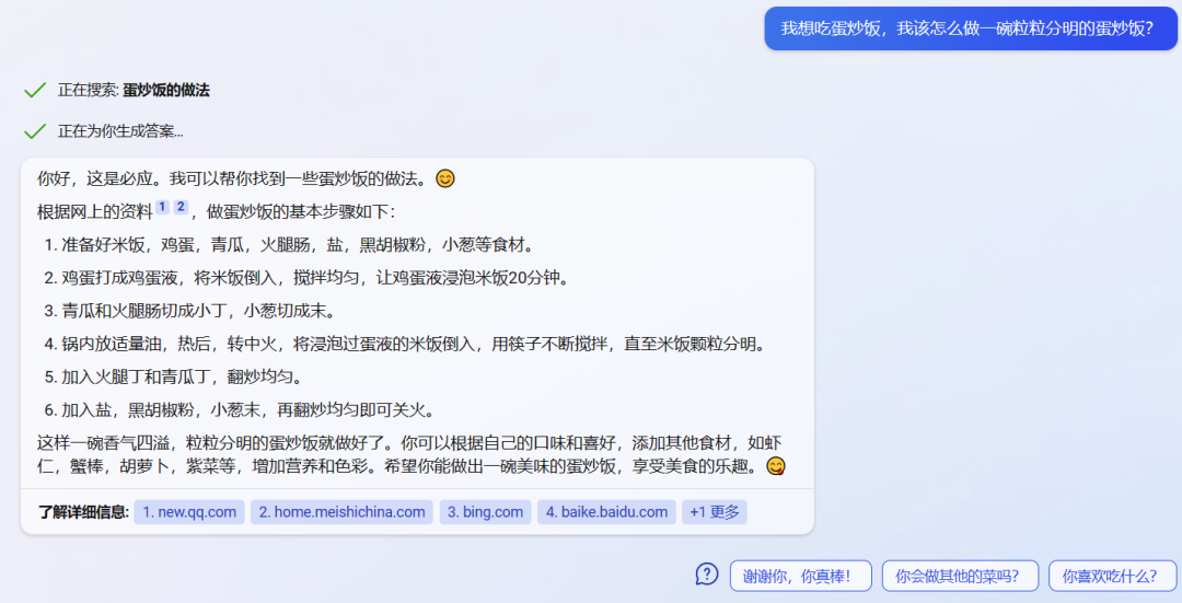 我们可以明显地感觉到,New Bing 在实用性方面,要远远高于前些天大家试用的 ChatGPT 。