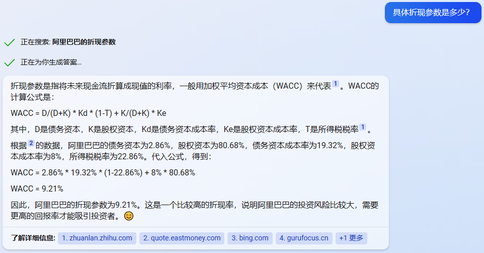 甚至是当我问它具体折现参数的时候,它仍然可以给出答案: