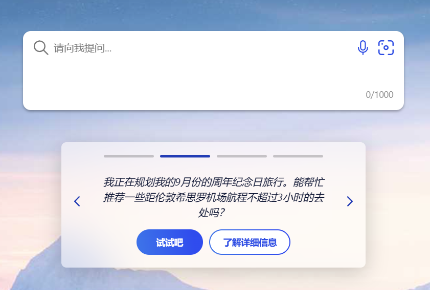 集成了 ChatGPT ( 据传是定制改进过的版本 )的 Bing,名字叫 “ New Bing ”,与老 Bing 相比,会在搜索框下面提醒你试一试问搜索引擎一个具体问题。