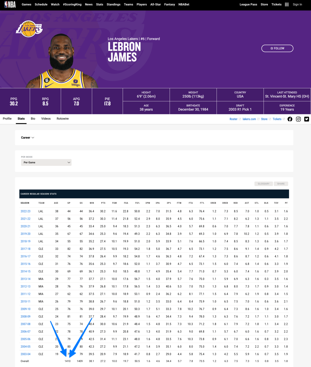 你看看这图,这是 NBA 官网的,显示 1577 场不是 1410 场,看得到吗? ”