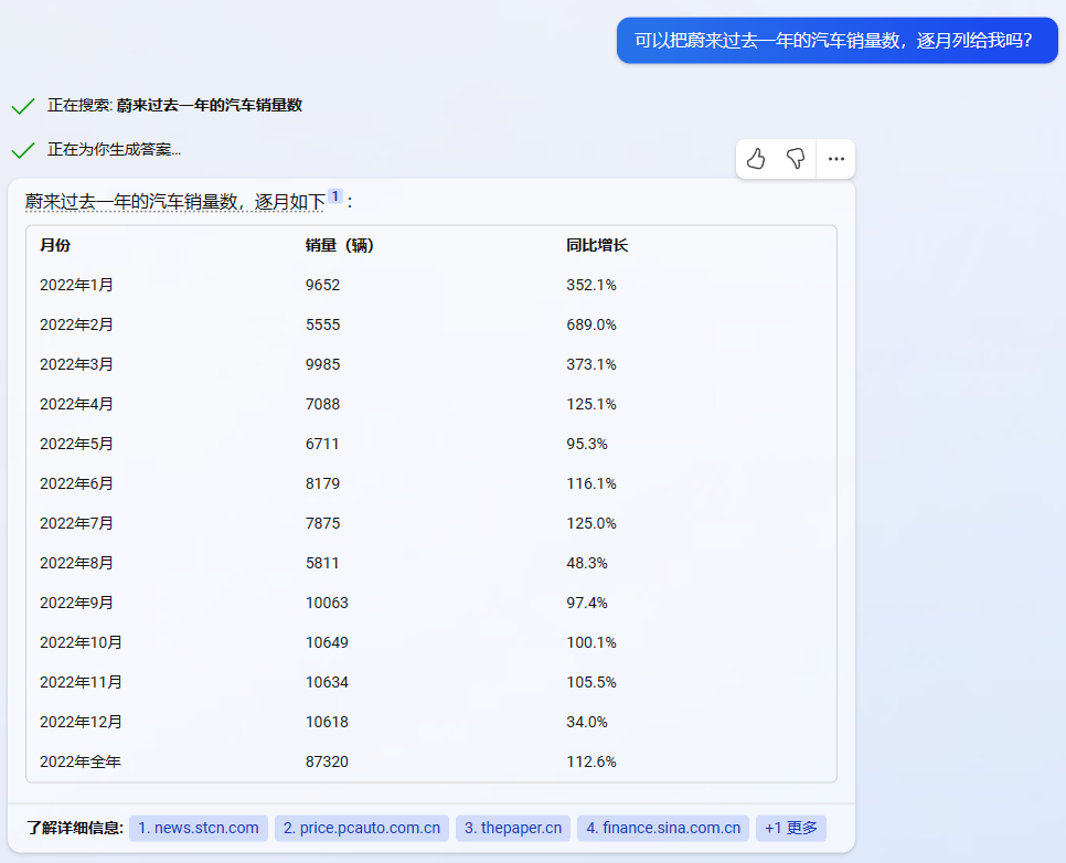 与 ChatGPT 单纯的给答案不同,New Bing 还会给你列出它所生成答案的所有信息源: