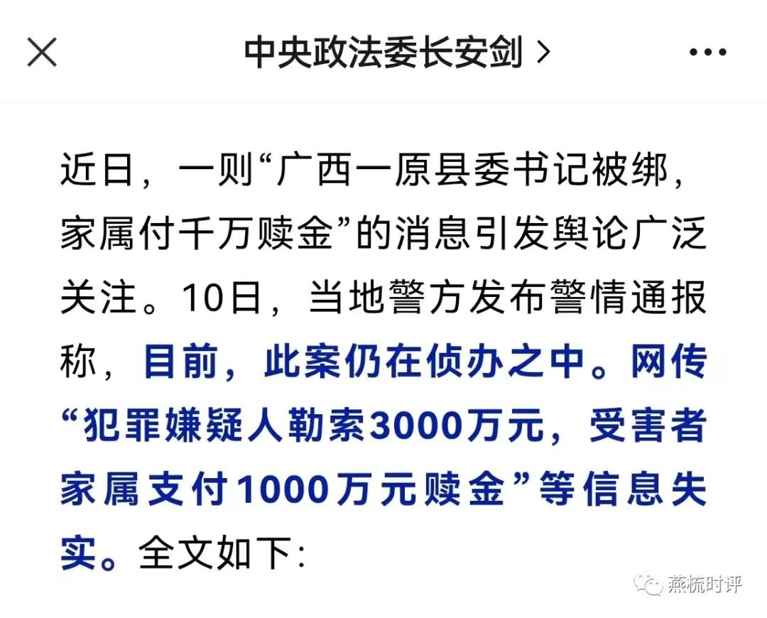 “县委书记被绑架,家人两天内凑齐1000万”,这么有冲击力的消息瞬间传遍网络。