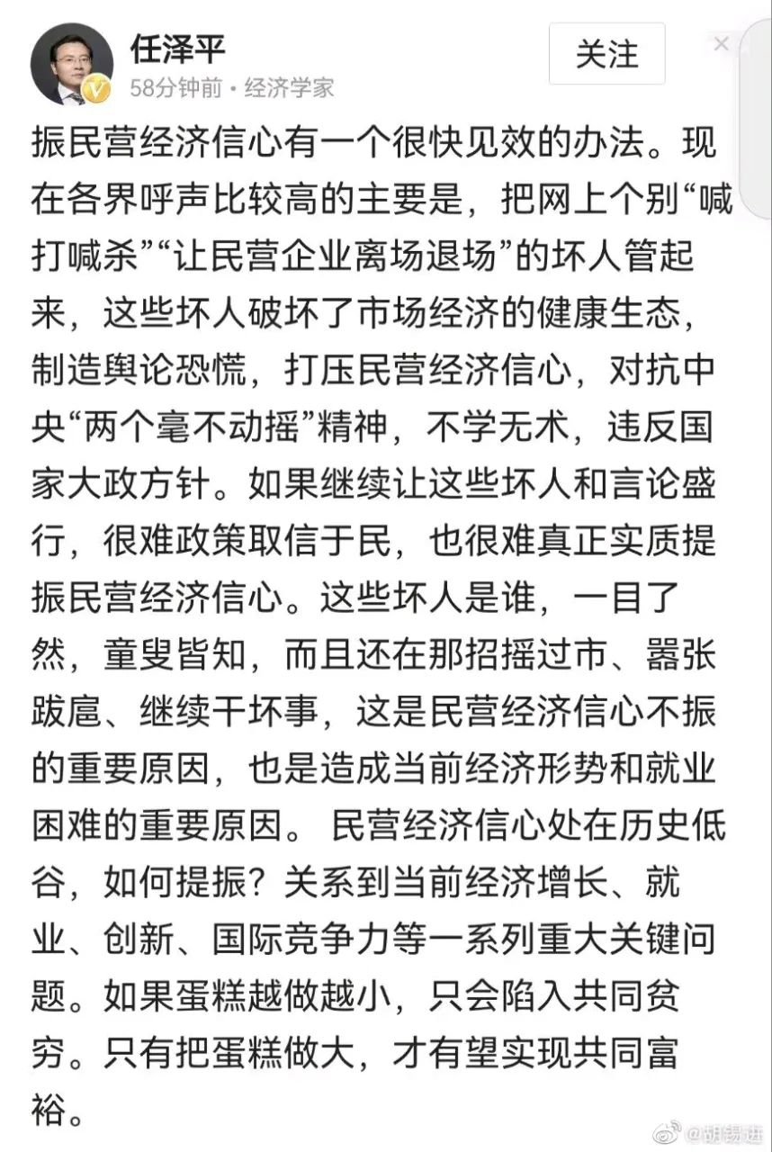 而且不要忘记,任泽平自己就是一个知识分子,他的目的,同样是要占据舆论话语权,他提出的无数愚蠢建议,都是想当国师想疯了的表现。那么对他的话,必须高度警惕,有朝一日他当了国师,估计说其他话、不符合他的心意的话,即使符合私产原则,他也要禁止。