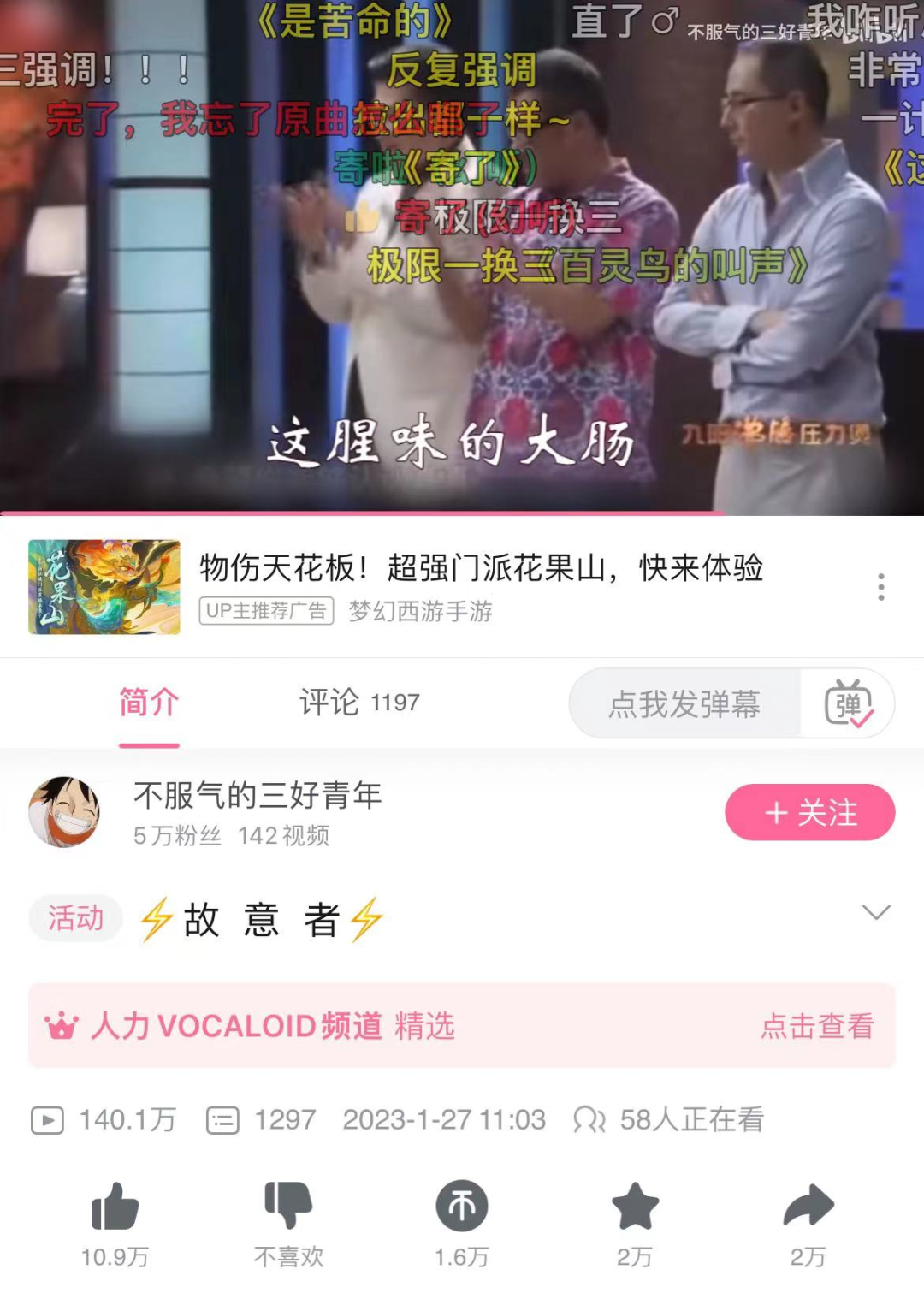 B站还创造了大量玩梗视频,比如九转大肠(孤勇者版): “值了!这腥味的大肠”