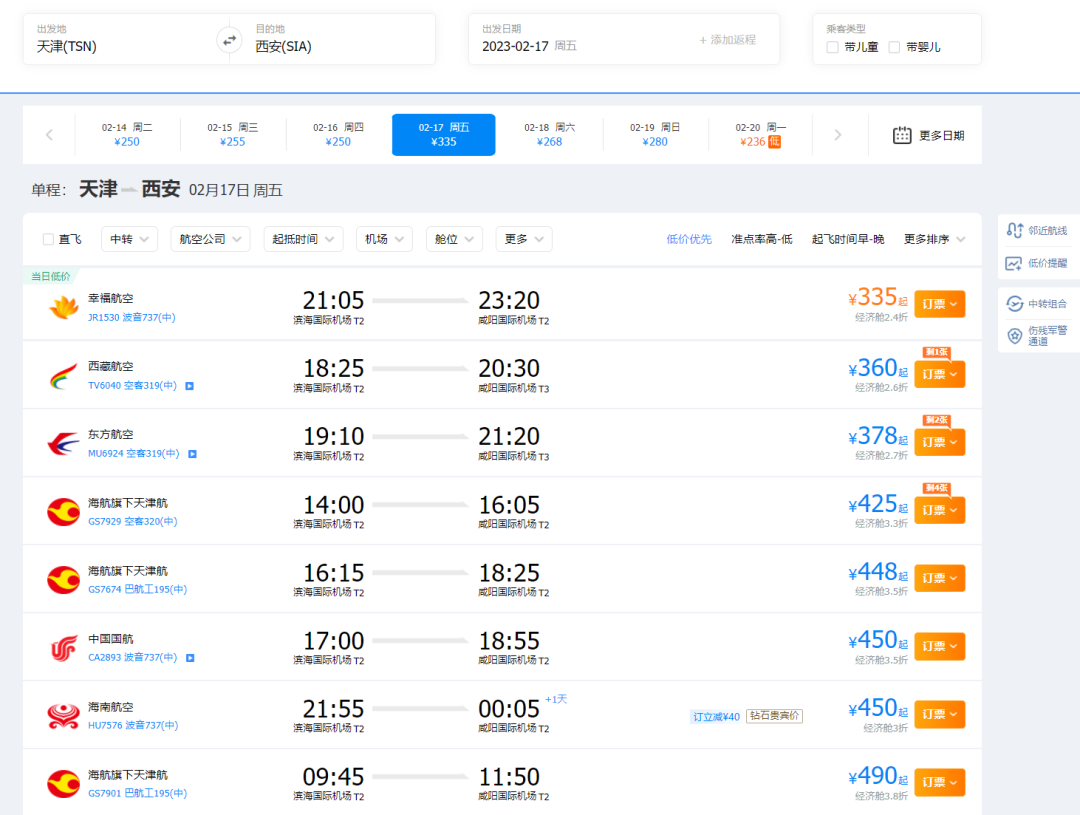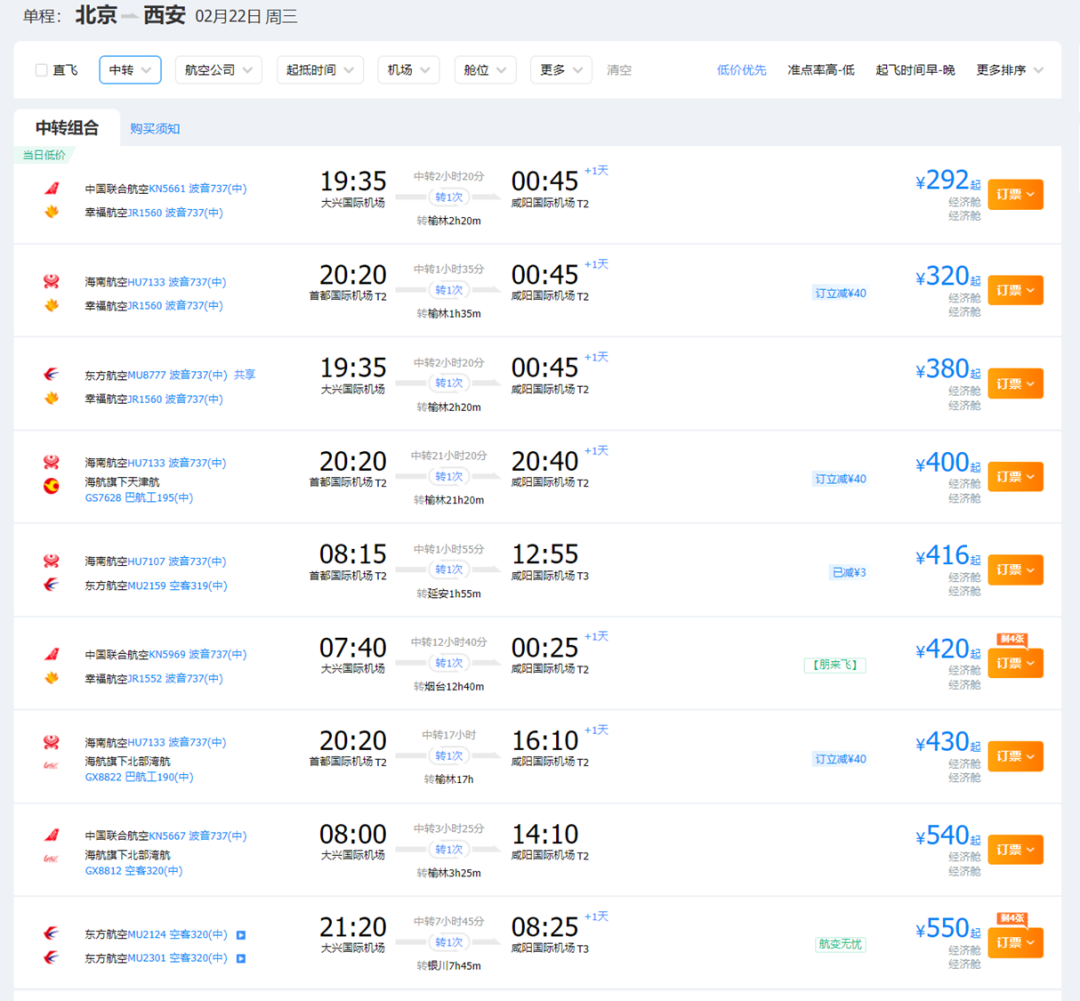不过在上述传闻中,一句联程不在管控范围引起了我的注意。还是拿北京西安来说,转机航班的价格显然更好看。