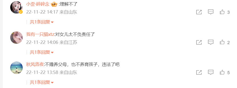 这些道理摆在我们面前,都是显而易见的,很多网友也纷纷为她的父母、女儿生气。